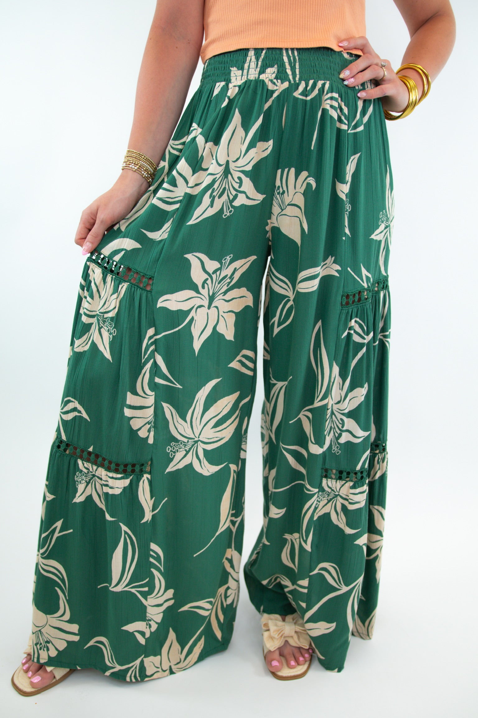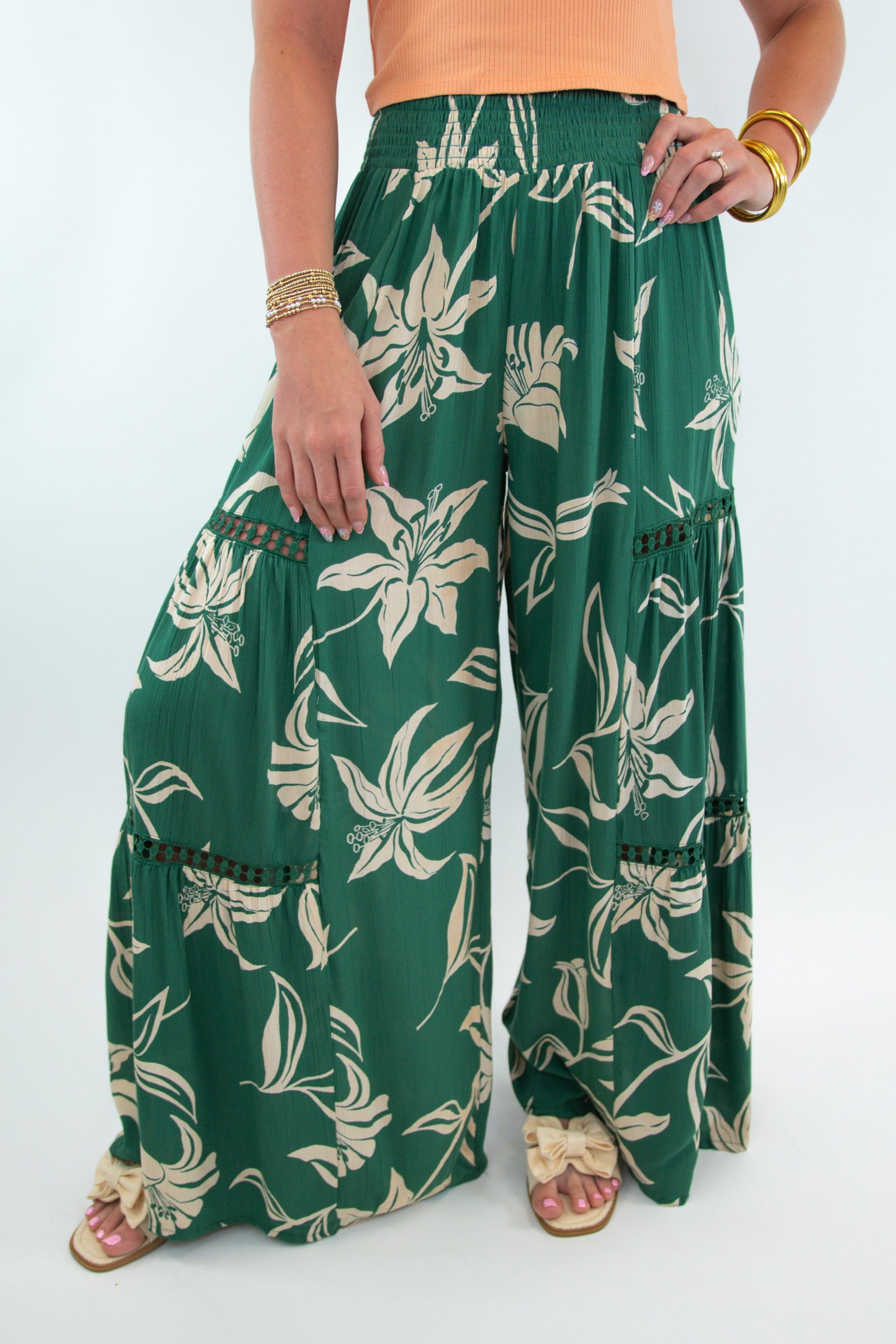 Add a touch of playful elegance to your wardrobe with our Lace Detail Tropical Wide Leg Pants. The vibrant tropical print and wide leg design are perfect for those breezy summer days, while the delicate lace detail adds a touch of sophistication. Stay cool and stylish all season long!