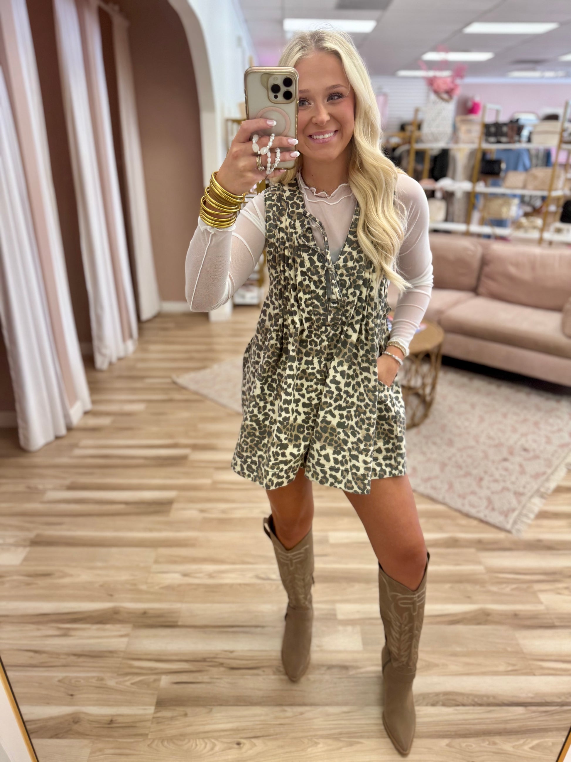 Unleash your wild side with this playful yet functional Leopard Print Pleated Romper. The bold leopard print adds a touch of fun to the classic pleated denim design. Perfect for any occasion!