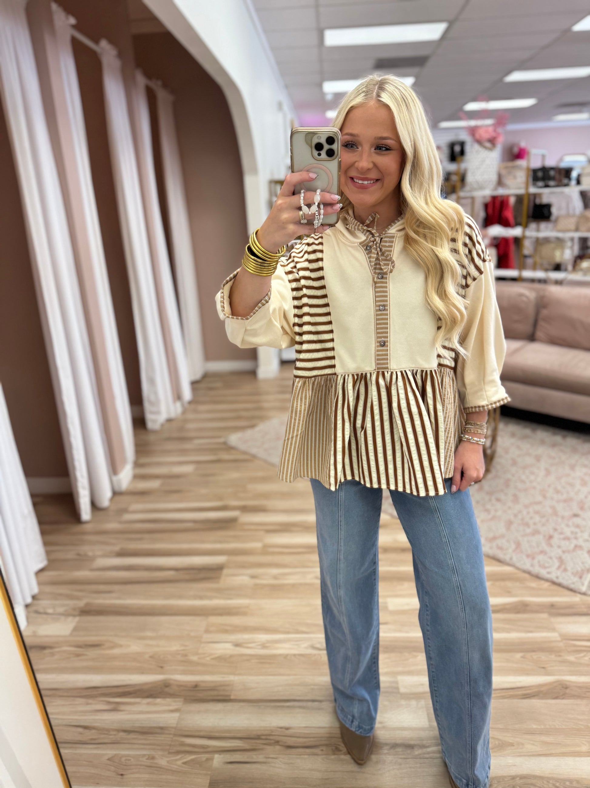 Stay ahead of the fashion game with this playful Patchwork Button Tie Detail Top With Hood. The unique patchwork design and hood detail add a touch of whimsy to this fall top. Available in 2 colors, this top will keep you stylish and comfortable